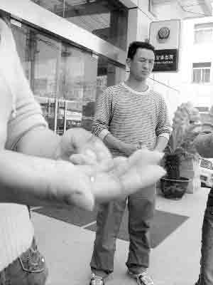 昨天,王麗和小姑栗麗再次來到景明佳園內(nèi)擺攤。上午11點,王麗準(zhǔn)備到小區(qū)菜場買菜,不料剛走幾步遇上了前天和她發(fā)生沖突的一名城管人員,當(dāng)即攔住對方。“我說手指被他弄得伸不直了,他竟然拽住我就打!