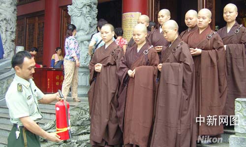 廣西加強(qiáng)奧運(yùn)期間景區(qū)安全 向僧尼講授正確滅火