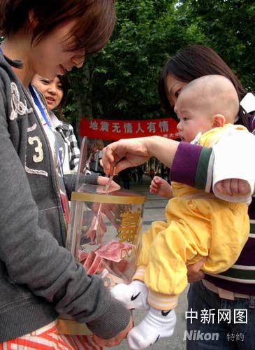 “地震無(wú)情人有情”,做善事不分國(guó)籍,這時(shí)有多位外籍人士也向募捐箱投下了一份愛心。在滬各界中外人士在1個(gè)半小時(shí)的時(shí)間內(nèi),共為災(zāi)區(qū)受災(zāi)群眾募捐到了人民幣兩萬(wàn)多元及眾多救災(zāi)物資。完