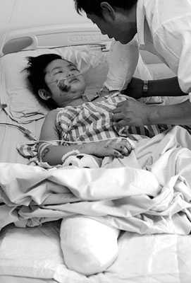“媽媽,我的手腳呢?”這是昏迷4天的羅穎醒來后對媽媽說的第一句話。前日上午10時(shí),看著剛剛醒來身體還很虛弱的女兒,陳樹彬眼眶含著淚看著女兒。母女倆相視幾分鐘后,陳樹彬說:“穎穎,你的左手和右腿受了很重的傷,已經(jīng)被包扎好了,你身體虛弱所以沒有感覺,你傷好了,扯了紗布就有感覺了!甭犞拮优c女兒的對話,坐在一旁的袁海轉(zhuǎn)身,抹了一把眼淚,但隨即轉(zhuǎn)過身,看著女兒望過來的目光強(qiáng)顏微笑。(特派記者 李雙全 鐘臻)