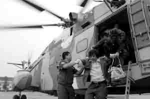隨著救援工作從縣級(jí)城市向周邊鄉(xiāng)鎮(zhèn)的延伸,被地震和泥石流大面積破壞的山間公路越來越嚴(yán)重地影響到地面搜救的推進(jìn)速度,在這樣嚴(yán)峻的形勢(shì)下,開辟一條迅捷安全的空中通道顯得尤其重要。綿竹清平鎮(zhèn)、彭州銀廠溝、汶川縣映秀鎮(zhèn)……將這些點(diǎn)與成都串聯(lián)起來,便是南空某搜救團(tuán)開展抗震救援實(shí)施行動(dòng)以來的航線圖。