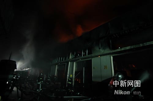 記者現(xiàn)場(chǎng)看到,整個(gè)倉(cāng)庫(kù)全部燃燒,著火的倉(cāng)庫(kù)外墻已被完全熏黑,不時(shí)有火苗沖出窗口。整個(gè)倉(cāng)庫(kù)被黑煙籠罩,很遠(yuǎn)便能聞到刺鼻的塑料焦糊味。