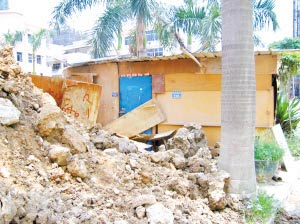 這個窩棚看上去已經(jīng)廢棄多時,旁邊工地的泥土幾乎把大門都封住了。不過門上還掛著一個門牌,寫著“114”號。該路段附近沒什么人行走,旁邊工地的一個工人告訴記者,一直沒見過這房子有人出入。
