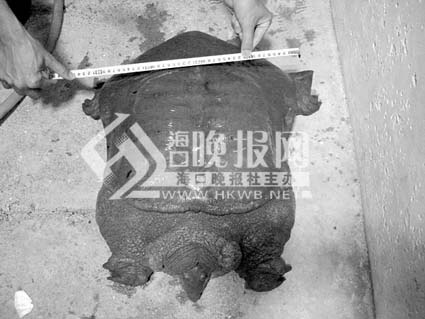 昨天下午,記者從尖峰嶺林業(yè)公安局獲悉,有人幾天前在天池湖釣到一只大甲魚,重達(dá)40斤。這樣大的甲魚實在罕見,該局已“收養(yǎng)”這只甲魚,并將擇日放生。