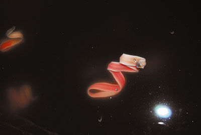 王先生說,回家后他用電腦把原片放大到5倍,都觀察不到這種生物有明顯的外部器官:“沒有眼睛,也沒有嘴巴。如果是魚類一般見到光就很快游走,但這種東西我閃光燈打下去,也不怎么愛動(dòng),看起來很惡心!