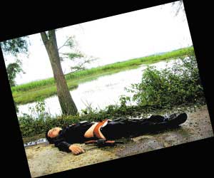 一聽是警察,3名劫匪知道大事不妙,持槍的兩名劫匪慌忙跳下路旁的水坑欲逃跑,駕駛摩托車的那名劫匪企圖駕車逃跑,由于緊張,車頭一扭也撞下水坑中。持槍的兩名劫匪跳下水坑后,其中一人大叫:“干掉他們(警察)。”隨即便轉(zhuǎn)身調(diào)轉(zhuǎn)槍口向著迅速圍捕過來的民警,企圖向民警開槍。就在這千鈞一發(fā)之際,民警果斷扣動了扳機(jī)。