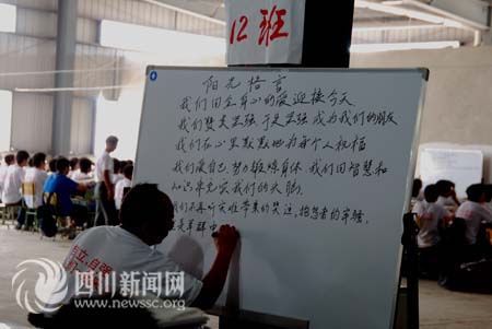 盡管耳邊有不同的教學(xué)內(nèi)容,但并不意味著學(xué)生就一定會三心二意。在姜久義老師的眼里,這些經(jīng)歷了大地震的孩子們,非常用功,非常懂事?吹嚼蠋焸兦Х桨儆嬄(lián)系到這大廠房做教室,給學(xué)生們搬來1800套課桌椅、800多套上下床時,學(xué)生們明白,這個時候自己應(yīng)該做什么。許多同學(xué)們都有同感:剛開始還不大適應(yīng),不過精力一旦集中,耳朵里就全是自己老師講課的聲音了。當(dāng)記者接過同學(xué)們送的一支梔子花時,真實地感覺到這些學(xué)生的成熟和從容。