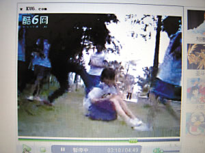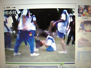 7月11日,酷6網(wǎng)上出現(xiàn)了一個肇慶某中學的女學生被打的過程視頻,視頻長達4分49秒,重復(fù)兩次播放。