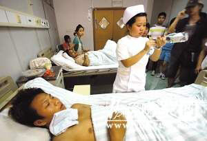 前日上午,南京江寧區(qū)東山鎮(zhèn)第二農(nóng)貿(mào)市場外,賣龍蝦的小販俞某父子在收攤時候與城管隊員們發(fā)生了沖突。父子二人被十幾個城管隊員拳打腳踢。昨日截至記者發(fā)稿時仍然躺在醫(yī)院接受治療,醫(yī)藥費已花去幾千。但城管并不承認(rèn)打了父子二人一事。經(jīng)東山鎮(zhèn)派出所調(diào)解,雙方都同意心平氣和地坐下來,盡快協(xié)商解決此事。