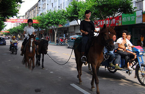 諸暨街頭出現(xiàn)“都市遛馬族”。