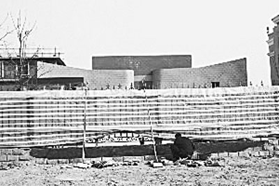 -工人在維修被撞壞的保定監(jiān)獄柵欄