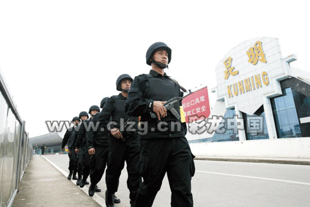 幾名頭戴防彈頭盔、身穿防刺背心、手握微型沖鋒槍全副武裝的民警,威風(fēng)凜凜地從人群中走過(guò),和其他民警不一樣的是,他們手臂上戴著寫(xiě)有“昆明特警”醒目字樣的袖章。按省公安廳和市公安局的要求,從前天下午3點(diǎn)開(kāi)始,昆明市公安局特種警察支隊(duì)進(jìn)駐昆明機(jī)場(chǎng)、火車站及各大汽車客運(yùn)站,開(kāi)始不間斷的武裝巡邏。