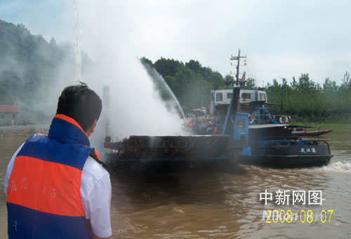 中新網(wǎng)武漢8月7日電 (費? 石博宇 徐金波)為提高人民群眾反恐和水上安全意識,確保奧運(yùn)期間轄區(qū)安全,武漢海事局咸寧海事處會同長航公安局嘉魚派出所、赤壁市赤壁鎮(zhèn)派出所、洪湖市烏林鎮(zhèn)派出所和洪湖金迪汽車渡運(yùn)有限公司等單位,在北京奧運(yùn)會開幕前夕組織開展了“二地五方”水上反恐、消防聯(lián)合應(yīng)急演習(xí)。