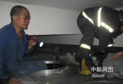 此時,劉華景發(fā)現(xiàn)帶來的照明燈也因為爆炸失去了功能,周圍一片漆黑。妻子受傷在一旁無法起身,丈夫為救妻子,一邊關(guān)掉了昏前使用的氧氣瓶,一邊拖著傷重的身體摸索著下水箱的梯子(現(xiàn)場一片漆黑,當時的梯子只搭在水箱上面,高度兩米五左右,劉華景眼睛受傷,只能摸索),費勁體力,終于找到了樓上值班的員工,并帶到了事故地點營救妻子。但事情卻沒有那么簡單,妻子的腰部受傷嚴重,如果輕易抬動,可能導致整個人永久癱瘓,所以員工不敢輕易救援,只能撥打了“120”和“119”救助。