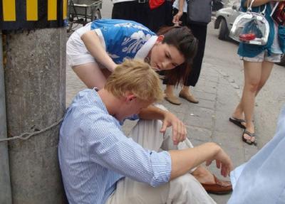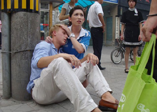 發(fā)帖人這樣描述現(xiàn)場的情景,“當(dāng)時一金發(fā)碧眼的老外走得挺慢,我沒怎么注意,一回頭那老外坐地下了,耷拉著個腦袋。 旁人圍了過來,議論說可能是中暑了,這會兒過來一漂亮美眉,還是個奧運志愿者,又是摸頭又詢問的。老外當(dāng)時瞳孔放大,很嚇人的樣子!美眉看樣子也有點發(fā)懵,不過,很快就指揮大伙打電話什么的。”“周圍還有人拿出風(fēng)油精,附近飯館經(jīng)理服務(wù)員呼啦全來了,還幫忙倒水。那志愿者美眉,我估計是還有點經(jīng)驗,又掐人中又揉太陽穴的折騰半天,可把她急壞了……一會老外終于站了起來!隨后志愿者美眉用英文問清老外的住址后要送老外回去,估計怕老外走半道再犯了啥的,旁邊大家都夸她,人家還挺低調(diào)扶著老外就走了!