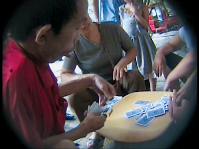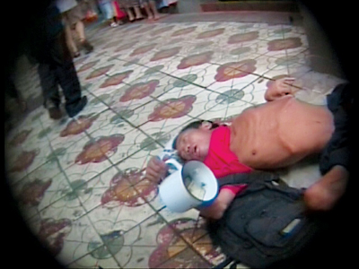 直到中午12點(diǎn)左右,乞討男子悄悄做了個(gè)手勢(shì),綠衣男子立刻跑來(lái)將乞討者背在背上離開(kāi)下河路!苞棥币贿吪臄z,一邊跟著兩人向魚(yú)洞車(chē)站走去。隨后,兩人坐上開(kāi)往李家沱的公交車(chē)。此后,讓人意想不到的情況發(fā)生了,“鷹”看到,兩人吃過(guò)午飯后,乞討者竟來(lái)到李家沱車(chē)站邊的東南亞農(nóng)貿(mào)市場(chǎng)門(mén)口斗地主。