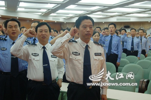 廬山公安局局長涂林帶領(lǐng)廬山全體民警重溫入警宣誓儀式