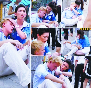 8月11日,一位網(wǎng)友在某論壇里發(fā)了個名為《我拍到最美的奧運志愿者美眉》的帖子,并附有多張現(xiàn)場照片。發(fā)帖人描述說:當(dāng)時一金發(fā)碧眼的老外走得挺慢,我沒怎么注意。一回頭那老外坐地下了,耷拉著個腦袋。旁人圍了過來,議論說可能是中暑了,這會兒過來一漂亮美眉,還是個奧運志愿者,又是摸頭又是詢問的。老外當(dāng)時瞳孔放大,很嚇人的樣子!美眉看樣子也有點發(fā)懵,不過很快就指揮大伙打電話什么的……周圍還有人拿出風(fēng)油精,附近飯館經(jīng)理服務(wù)員全來了,還幫忙倒水。那志愿者美眉,我估計還有點兒經(jīng)驗,又掐人中又揉太陽穴地折騰半天,可把她急壞了……隨后志愿者美眉用英文問清老外的住址后要送老外回去,估計怕老外走半道再犯了啥的,旁邊大家都夸她,人家還挺低調(diào)扶著老外就走了。
