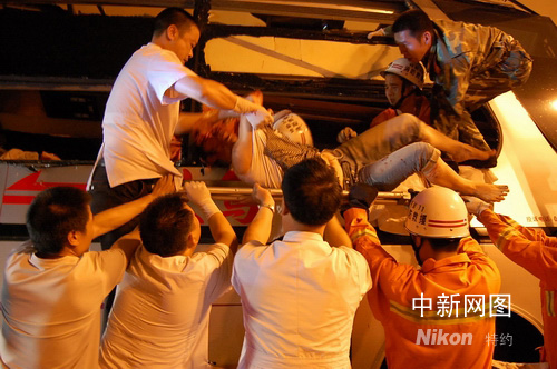 救援人員抓緊時間救人。