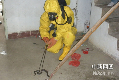 據(jù)現(xiàn)場一位有豐富捕蛇經(jīng)驗的老伯介紹,闖入民宅的為眼鏡蛇,系劇毒蛇,人一旦被咬傷后一般約在一至四小時左右才出現(xiàn)全身中毒狀,一旦發(fā)作就難以控制,嚴重者昏迷、呼吸停止,死亡率為百分之八十。