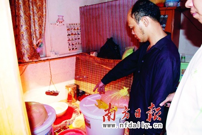 上月初,緝毒民警了解到,黃×新團伙購買了制毒化學(xué)品,開始了又一批毒品的制造。8月22日下午,偵查民警向支隊報告,黃×新等4名犯罪嫌疑人齊聚龍窩鎮(zhèn)一居民樓203室,有大批毒品即將制作完畢。旋即,緝毒支隊支隊長黃偉南帶領(lǐng)12位民警分成三組,驅(qū)車趕往龍窩鎮(zhèn)。