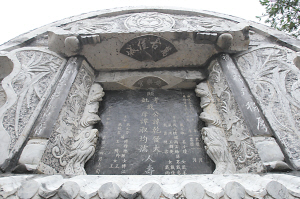 墓碑高近3米,兩旁雕刻有龍鳳和虎鷹等飛禽走獸