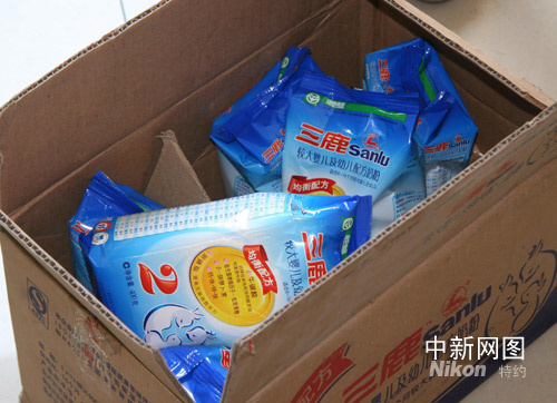 消費者出示要退掉的三鹿奶粉。 高新國 攝