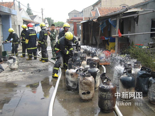 中新網(wǎng)寧波9月22日電(何蔣勇 帥帥)今天上午9點32分,位于浙江鎮(zhèn)海區(qū)一村莊發(fā)生了一起煤氣瓶代充點爆炸事件,造成了一人受傷。該煤氣瓶代充點內(nèi)有近60個左右的煤氣瓶,發(fā)生火災(zāi)后就連續(xù)爆炸,一連串的爆炸了30個左右。房子的房頂都已經(jīng)坍塌,墻壁也被炸裂,并排房子的玻璃全部被震碎了,就連隔著一條馬路的小店都遭了殃,小店內(nèi)的東西都被烤化,水果也被烤熟了。