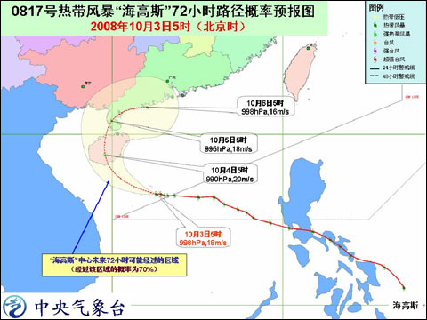 中央氣象臺(tái)2008年10月3日6時(shí)發(fā)布臺(tái)風(fēng)消息: