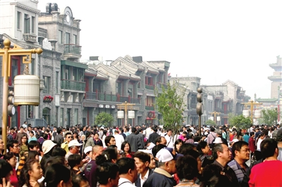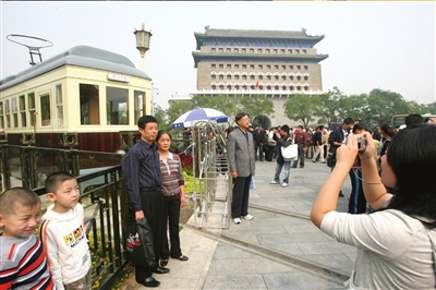 昨天,記者從崇文警方獲悉,十一黃金周前4天,前門大街接待觀光游客總數(shù)達99萬。前四天每天客流量均為綠色等級(同一時間在街內游覽的游客在1萬人以下),警方未對游客采取限流措施。