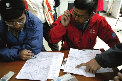 10月3日上午10點(diǎn),驢友們第二次集結(jié)。此次參加救援的驢友已增至25人,當(dāng)天的搜索范圍確定為妙峰山周邊區(qū)域。驢友們在禪房村一平房內(nèi)設(shè)立了后方臨時(shí)指揮部,負(fù)責(zé)與前方搜救人員溝通,并根據(jù)前方最新情況及時(shí)制定救援方案。經(jīng)過8個(gè)多小時(shí)的搜尋,驢友們?nèi)匀晃窗l(fā)現(xiàn)任何蛛絲馬跡,搜救工作再次宣告失敗。