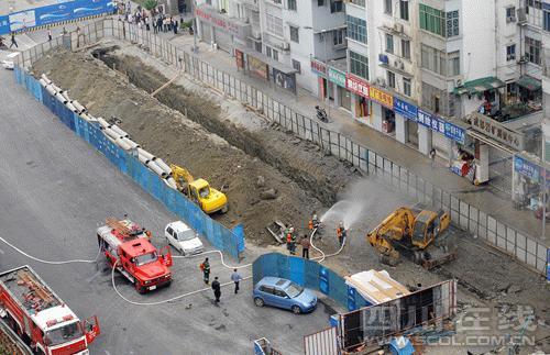 記者看到,消防隊員一邊疏散圍觀群眾,一邊組織水槍手不停地向煤氣管道的斷裂處、距離出事地最近的成都巖礦測試中心臨街的宿舍進行噴射,稀釋泄漏出來的煤氣。由于施工地點是在快車道上,現(xiàn)場執(zhí)勤的交警對人民北路一環(huán)路口至成都巖礦測試中心段暫時實行交通管制。