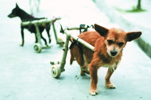 救助中心的條件比較簡陋,一開始只有8名工人,但每一只被救回來的貓狗在這里都受到了最好的照顧。如今,雖然不少狗都落下了終生殘疾,但身體狀況和精神狀況都基本恢復正常。對于它們來說,還能拉著“輪椅”繼續(xù)生活下去本身已是不幸中的萬幸。