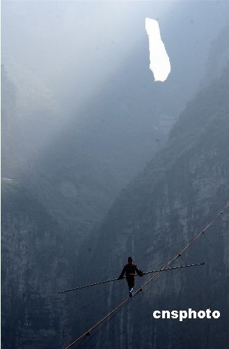 新疆"達(dá)瓦孜"傳人張家界挑戰(zhàn)極限坡度"失手"(圖)