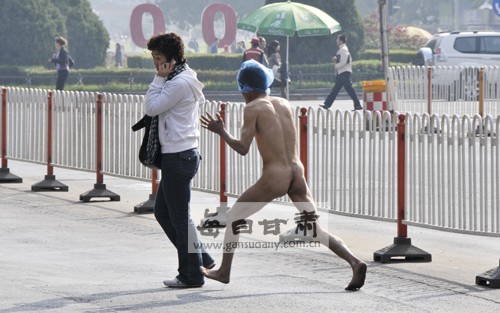 10月21日上午10時(shí)28分,在(蘭州)東方紅廣場至廣場西口一帶,一名30多歲渾身赤裸的瘋癲男子一會(huì)追逐過往行人,一會(huì)追逐駛過的車輛,一名年輕女子在遭其騷擾后嚇得失聲大哭。直到上午11時(shí)許,廣武門派出所民警接警趕到現(xiàn)場后,這一出鬧劇才得以收場。