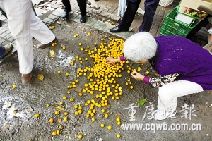 記者隨后與彭先生一起來到該水果店,并當(dāng)場剝開十來個橘子,最終找到一條蛆蟲。水果店老板見橘子內(nèi)果然有蛆,當(dāng)即拿出10元錢給彭先生作為補償,并將剩下的大半筐金橘倒在路邊,引得眾多路人圍觀。水果店老板稱,這些金橘采購自市內(nèi)水果批發(fā)市場。水果業(yè)有關(guān)人士稱,眼下重慶市場金橘多產(chǎn)自廣西,不一定與四川廣元有關(guān)。