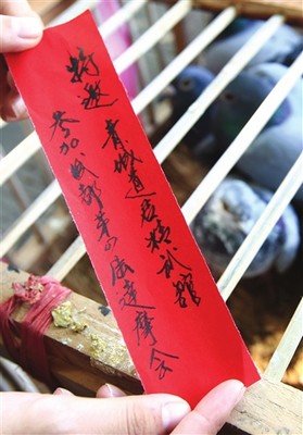 原本發(fā)一條短信或是打一個(gè)電話(huà),一分鐘就能搞定的事情。為何這么大費(fèi)周章,要用飛鴿傳書(shū)的形式呢?何偉琪介紹,古人就是利用烽火狼煙、繩結(jié)、信鴿等方式來(lái)遞信息的,而飛鴿傳書(shū)更是古代武林界重要的傳統(tǒng)儀式。在通信日益發(fā)達(dá)的今天,飛鴿傳書(shū)也只是對(duì)“傳統(tǒng)”的演繹。何偉琪說(shuō):“如果效果不錯(cuò),四川武林界將把這種傳統(tǒng)通信方式繼續(xù)沿用下去。”