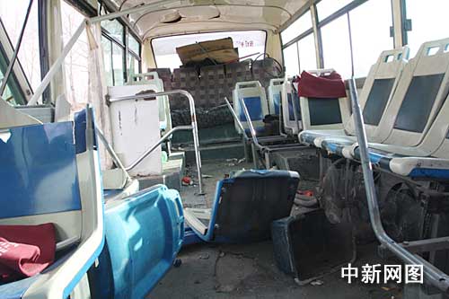 發(fā)生側(cè)翻的公交車(chē)內(nèi)景