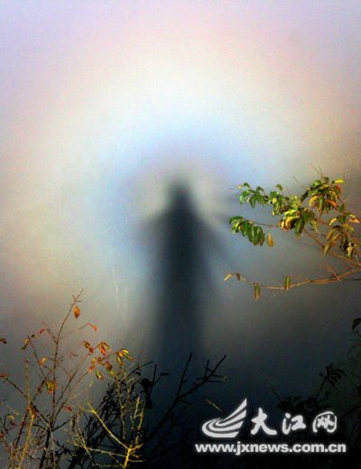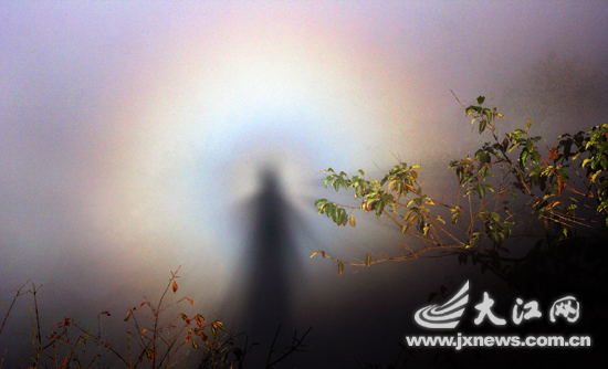 10月27日上午9時(shí)20分,井岡山黃洋界景區(qū)出現(xiàn)神奇瑰麗的云海日暈景觀。光圈中央像是一個(gè)人的影子,虛明如鏡,外圍呈現(xiàn)出紅、橙、黃、綠、青、藍(lán)、紫互相交織的七色光環(huán),整個(gè)光圈由遠(yuǎn)及近,由大變小,持續(xù)時(shí)間長(zhǎng)達(dá)40分鐘之久。