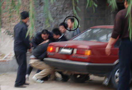 為進(jìn)一步證實(shí)搓麻者的身份,記者在鎮(zhèn)政府附近求證時(shí),遭遇不明身份人員搶奪攝影器材。為保護(hù)好攝影器材,三名記者遭圍攻。本報(bào)司機(jī)用車內(nèi)另一臺(tái)相機(jī)拍下?lián)寠Z現(xiàn)場(chǎng),不明身份者又來(lái)?yè)寠Z他的相機(jī),并將其右胸刺傷。