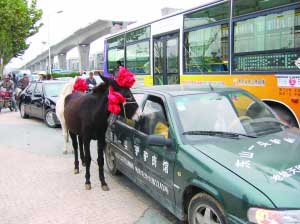 “咦,快看呀!這輛車后面跟著兩頭驢!”“怪事,驢子怎么能到大馬路上逛街呀?”昨天下午4點多,經(jīng)過江寧竹山路一帶的市民驚奇地發(fā)現(xiàn),兩頭毛驢拴在一輛緩緩行駛的轎車兩側(cè),這一奇怪的組合吸引了眾多路人的目光。