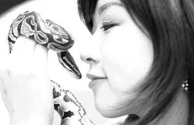 “呀!那個女娃兒和一條花蛇親嘴!”昨日下午,一名年輕女子手持一條金、黑相間,一米余長的蛇出現(xiàn)在南坪福利社附近,引起市民圍觀。這時,女子當(dāng)眾與愛蛇接吻,驚嚇住在場群眾!
