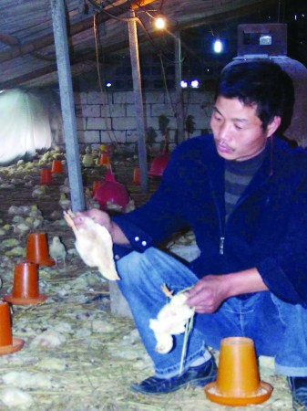謝文明介紹說,10月27日,他從當(dāng)?shù)匾恍抛u(yù)較好的廠家進(jìn)了7000只優(yōu)質(zhì)雞苗,這批雞苗價(jià)值2.1萬元。為了這批雞苗長(zhǎng)成時(shí)能掙個(gè)好價(jià)錢,他還一次性買了3000多元的飼料和用于雞棚保溫的2000多元的煤炭。可現(xiàn)在7000只雞僅僅剩了不到300只,直接經(jīng)濟(jì)損失近3萬元?粗@些死去的雛雞,今年38歲的謝文明心疼得直掉眼淚,妻子更是連飯也吃不下去。