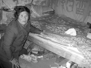 他們的住處,是一間大約10平方米的小屋。在這間局促的小屋中,擺了一張舊雙人木床,環(huán)顧四周,似乎再無擱腳之地。孫秀珍熱情地請記者坐下,記者四下看了一圈,才勉強找到一個學(xué)生使用的老式四腳條凳,一條洗得發(fā)白,已經(jīng)看不出顏色的舊枕巾,被線繩牢牢地纏在凳面上。