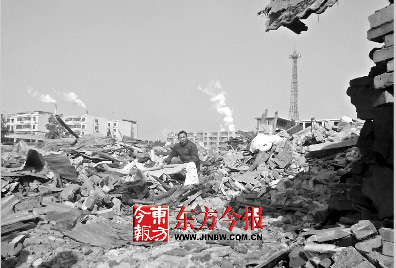 8日凌晨3點,和侄子岳躍彬一起在屋里睡覺的王金樹聽到踹門的聲響!斑沒來得及穿上衣服,門就被踹開了”。“出去!出去!”10多名手掂木棍的男子高喊。王金樹還沒開口,右手臂就挨了一木棒!拔冶粠讉人拖到了10多米外的地方,他們強迫我跪下。”王金樹說。這時,早已守候在外的一輛大鏟車開始向房子軋過去。光著腳從屋子里跑出來的岳躍彬,被落下的木頭砸到一只腳,幾個人將其拖到了王金樹身邊,也強迫他跪下!拔沂亲鲇鸾q服生意的,屋里有縫紉機、布料、羽絨等大量原料,值13萬元左右。”王金樹苦苦哀求,但沒人理會。一起“遭殃”的,還有一旁的商戶胥字義,胥字義經(jīng)營一家百貨商店,數(shù)萬元的貨物被埋。就這樣,胥字義、王金樹、岳躍彬3人被強迫跪在路邊,眼睜睜看著自己的店鋪毀于一旦。