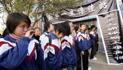 11月10日上午11時(shí)58分,榆中縣一悟路整條路面上哭聲一片。刺骨的寒風(fēng)中,一千余人自發(fā)排成長(zhǎng)長(zhǎng)的“人道”,送他們心中的好老師——突發(fā)腦溢血暈倒在講臺(tái)上的榆中縣第六中學(xué)數(shù)學(xué)教師景正翠最后一程。