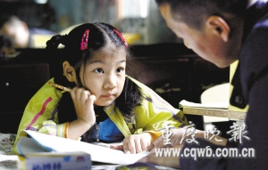 怡怡因病輟學后,仍在家堅持學習。 記者 楊帆 攝