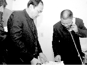 辦公室一位男子給公司領(lǐng)導(dǎo)打電話。