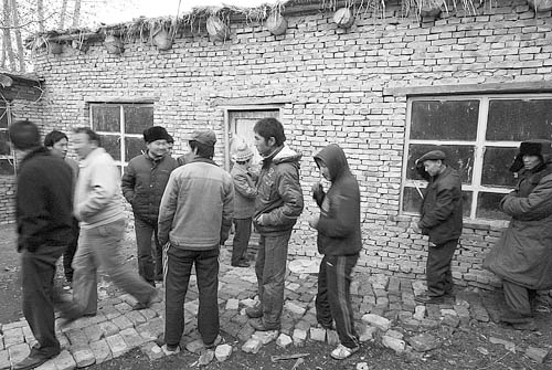 張培偉的母親和前來(lái)觀看的人與雪豹合影。賴宇寧攝