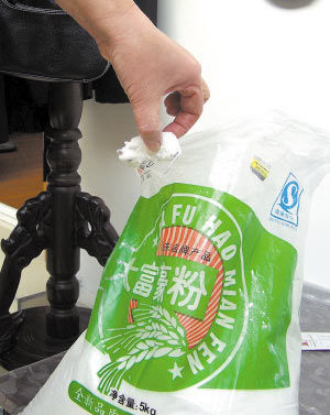 昨天上午,家住安徽路9號(hào)的曲先生跟老伴商量著包牛肉餃子,可當(dāng)他打開已經(jīng)吃了一半的那袋面粉后,發(fā)現(xiàn)里面竟藏著一只已經(jīng)干癟的小老鼠!生產(chǎn)、儲(chǔ)藏、運(yùn)輸、銷售,到底是那個(gè)關(guān)口出現(xiàn)了漏洞,讓這只老鼠溜進(jìn)了面堆里?銷售商、廠家代表和曲先生昨“三堂會(huì)審白玉堂”,最終發(fā)現(xiàn),這代面粉可能是“李鬼”。曲先生表示,他將向銷售這袋面粉的金麥園湖北路店追究責(zé)任。